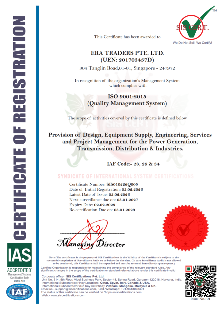 Founded in 2017 as a Trading company, in its enthusiastic Seven years, ERA Traders Pte Ltd (ETPL), has transformed into a full-fledged EPCM company Providing Engineering, Procurement, and Project Management services in Power Generation, Transmission, Distribution in Bangladesh, China, Middle East, Australia, Singapore.